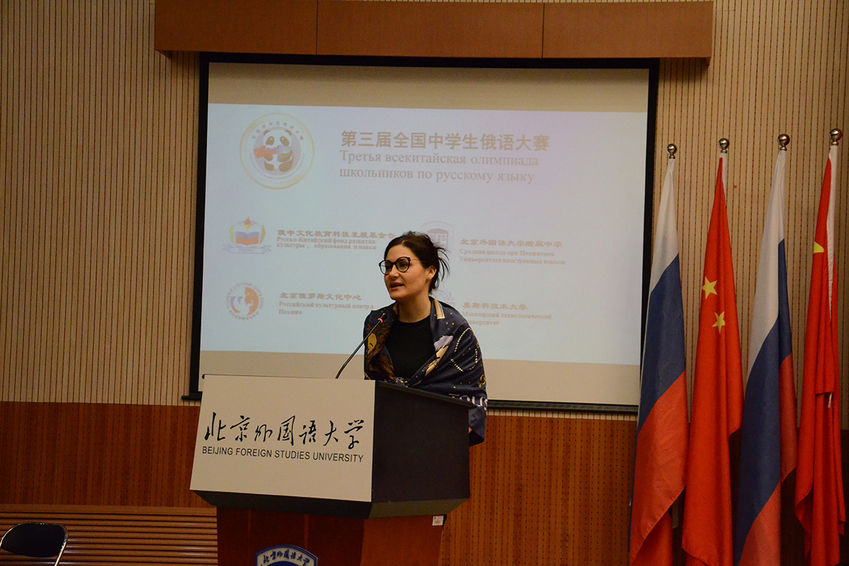 К.С. Есаулова, проректор по международной деятельности и ДПО МГУПП, открывая олимпиаду, пожелала юным участникам успехов в овладении русским языком.