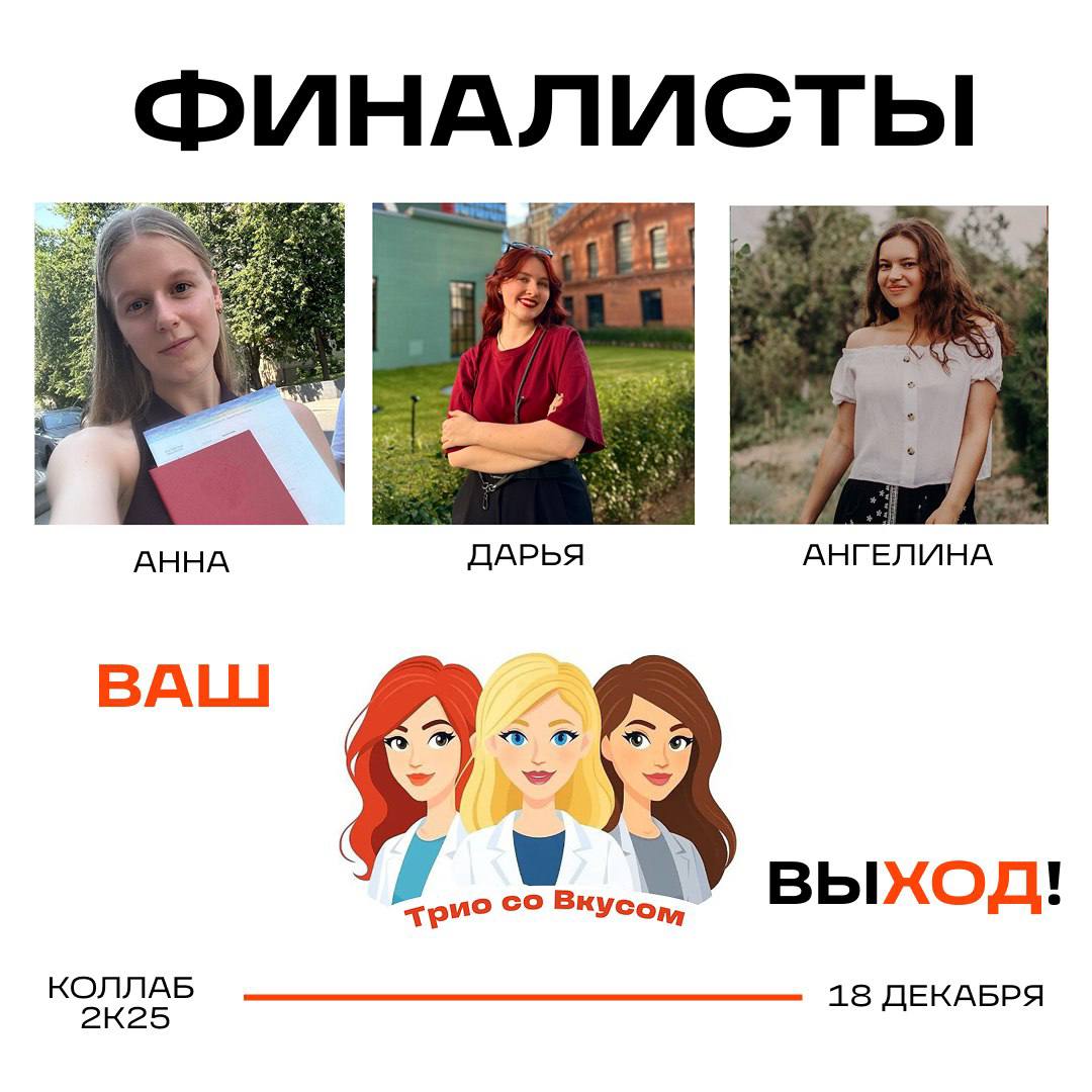 8 декабря 2025 Команда «Трио со вкусом», в составе которой студентка 1 курса магистратуры Дарья Макушева, а также выпускницы бакалавриата Анна Брончукова и Ангелина Богдашина, прошла в финал студенческого инкубатора «КОЛЛАБ 2К25», организованный ВкусВилл.
