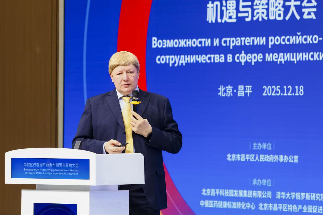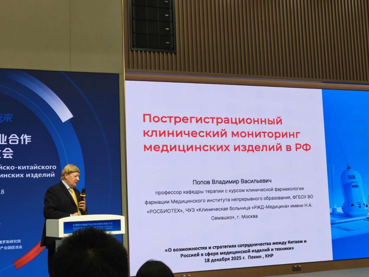 22 декабря 2025 Профессор кафедры терапии с курсом клинической фармакологии и фармации Медицинского института непрерывного образования, врач-клинический фармаколог ЧУЗ «Клиническая больница «РЖД-Медицина» им. Н.А. Семашко Владимир Попов выступил на конференции «О возможностях и стратегиях сотрудничества между Китаем и Россией в сфере медицинских изделий и техники», прошедшей в Пекине.