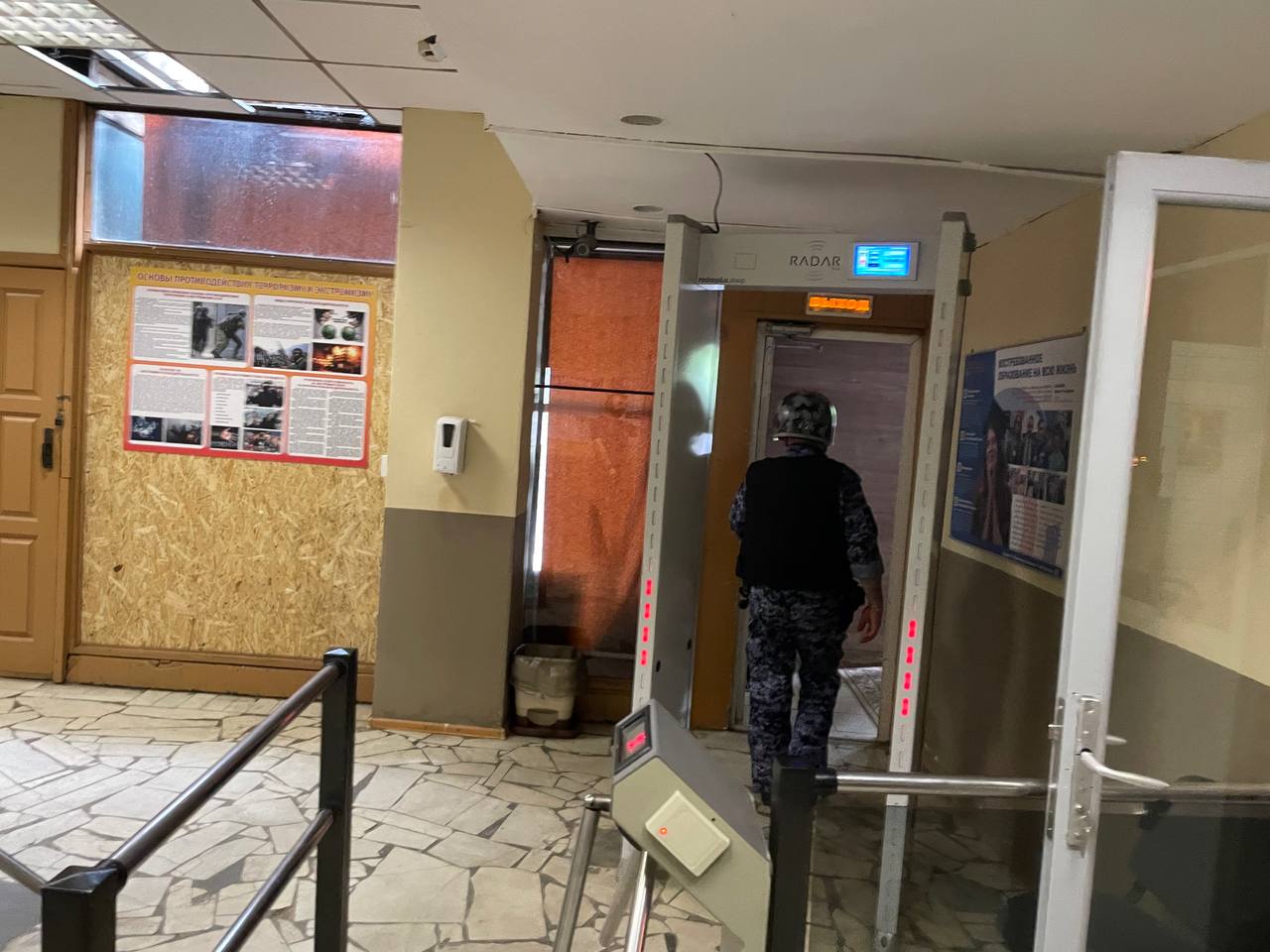 Сначала был проведен дополнительный инструктаж с сотрудниками дежурной смены охраны по работе с системами оповещения и управления эвакуацией, по алгоритму действий при обнаружении БПЛА, при обнаружении очага возгорания после срабатывания взрывного устройства и по прибытию территориального подразделения Росгвардии.