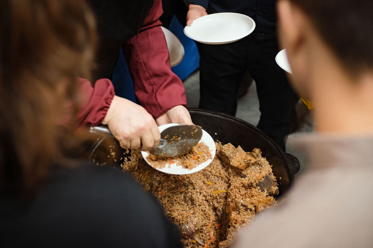 Для гостей и участников было приготовлено100 кг плова и других блюд из риса по уникальным технологиям лучшими поварами и плововарами. Благотворительные предновогодние угощения, дегустация плова, дружелюбное общение и атмосфера праздника запомнятся всем, кто посетил Международный фестиваль риса.