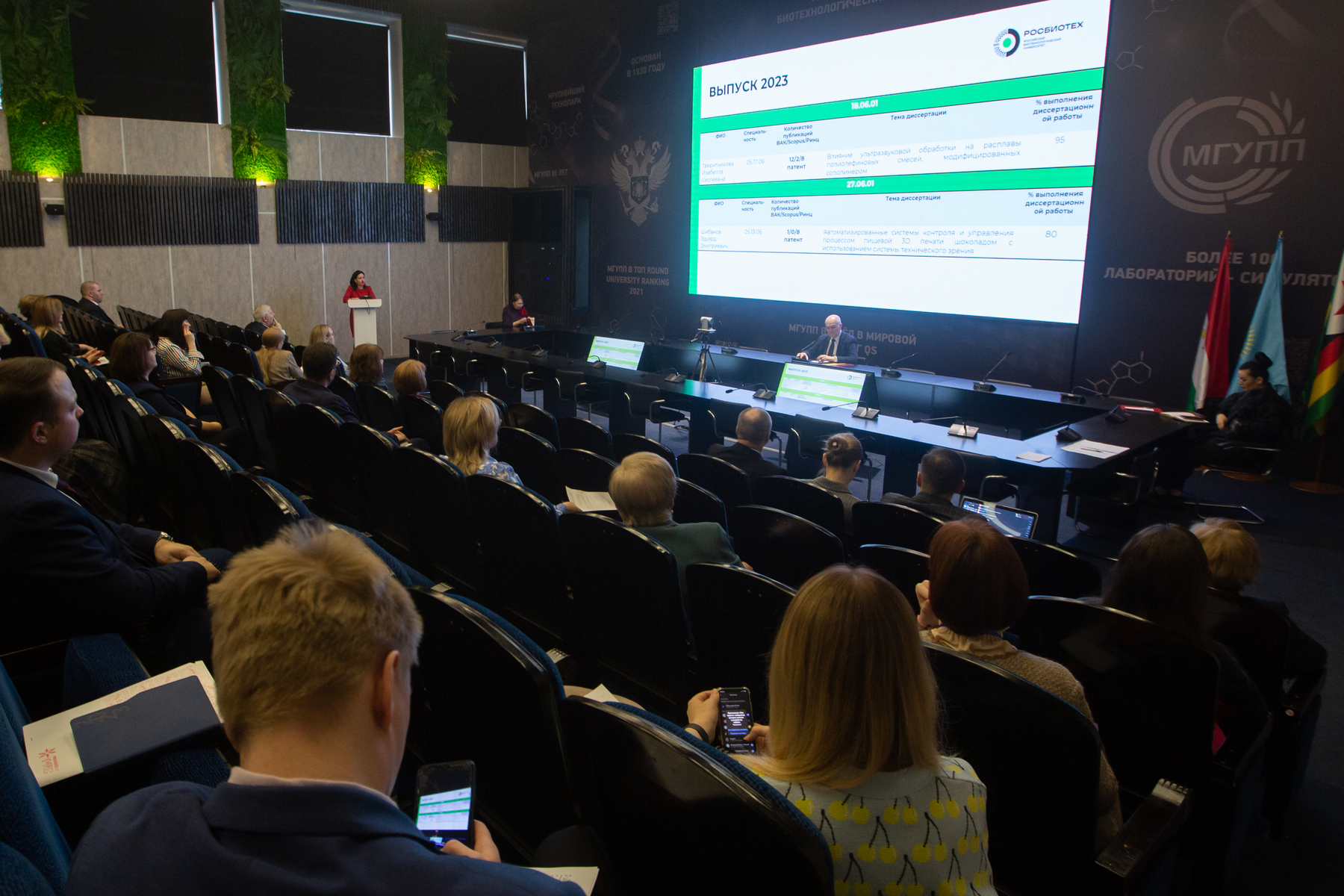 Начальник отдела подготовки научно-педагогических кадров высшей квалификации Банникова О. А. доложила о ходе выполнения диссертационных работ выпускниками 2023 года.