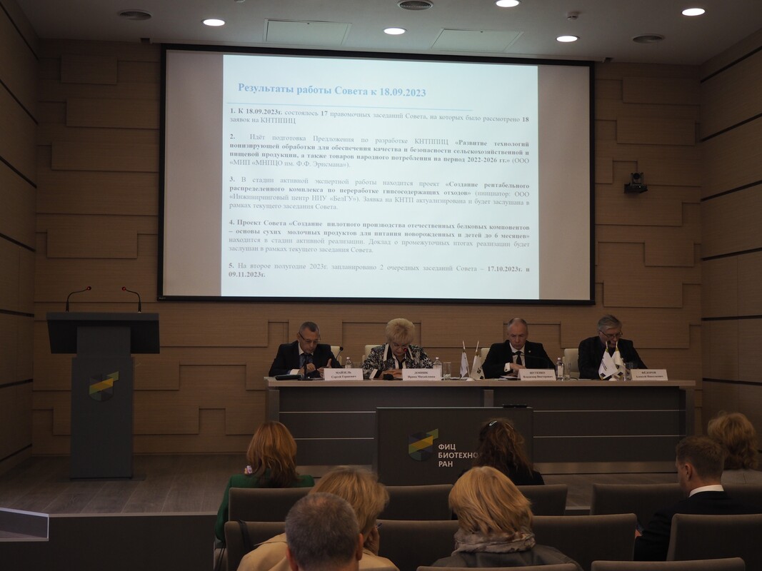 22 сентября 202318 сентября 2023 года на площадке ИНМИ ФИЦ Биотехнологии РАН состоялось очередное заседание Совета по приоритетному направлению Стратегии научно- технологического развития Российской Федерации «Переход к высокопродуктивному и экологически чистому агро- и аквахозяйству, разработка и внедрение систем рационального применения средств химической и биологической защиты сельскохозяйственных растений и животных, хранение и эффективная переработка сельскохозяйственной продукции, создание безопасных и качественных, в том числе функциональных, продуктов питания» под председательством академика РАН И.М. Донник.