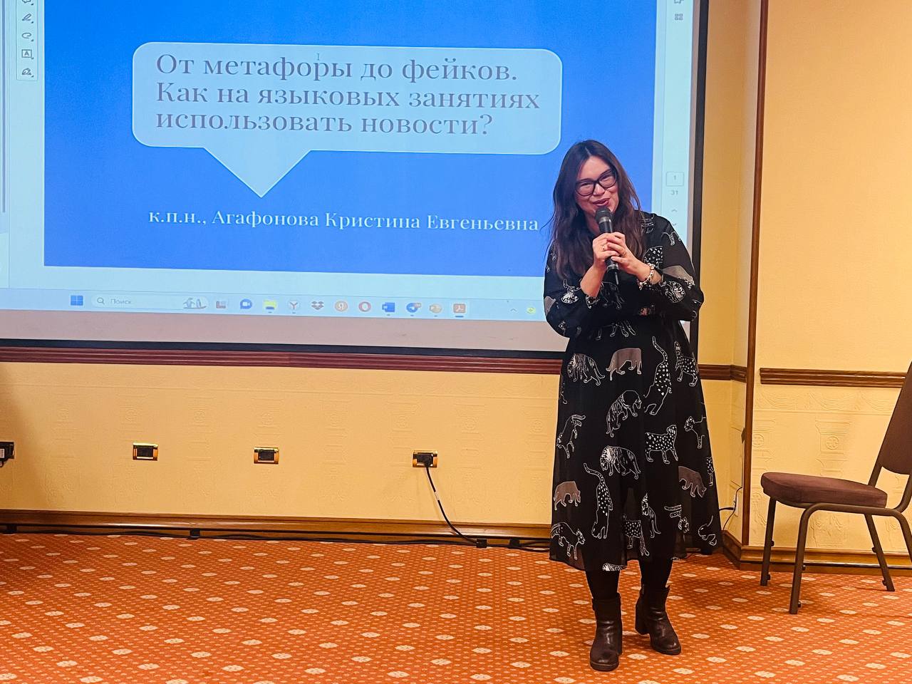 Заместитель директора Института международного образования Кристина Агафонова выступила с докладом «От метафоры до фейков» и представила одноименную монографию.